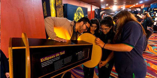La muestra invita a niños, jóvenes y familias completas a comprender de una forma lúdica el sistema planetario, explorando a través de 12 módulos interactivos, conceptos como el movimiento de rotación y traslación, las características del Sol, la Luna y los planetas que conforman nuestro entorno.