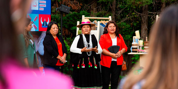 El grupo conformado por Sandra Osnayo, Lidia Villalobos, Jocelyn Yucra y Luzmira Mamani, viajó hasta Francia y España, donde tuvieron la oportunidad de exponer su producción de Artesanía Textil Aymara; un trabajo de gran calidad y valor cultural que se produce a través del tejido de finas fibras de alpaca y que contiene un profundo vínculo con la tierra, la cultura y la tradición de su pueblo ancestral Aymara.