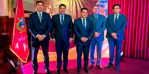 El gobernador regional de Arica y Parinacota, Diego Paco Mamani, junto a los gerentes de Empresa Portuaria Arica (EPA), Jorge Cáceres, y de Terminal Puerto Arica (TPA), Camilo Jobet, participaron en el Primer Encuentro Internacional de Integración y Desarrollo Comercial realizado en Oruro, Bolivia.