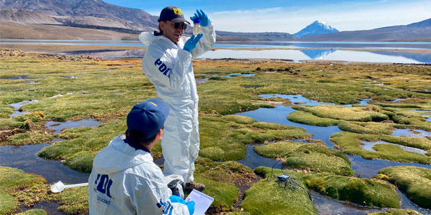 Detectives de la Brigada Investigadora de Delitos contra el Medioambiente y Patrimonio Cultural de la PDI Arica y peritos ecólogos de Laboratorio de Criminalística Central, realizaron nuevos peritajes para evaluar el daño ambiental que generó el vertimiento de un cargamento de aceite de soya en el Lago Chungará, en la Región de Arica y Parinacota.